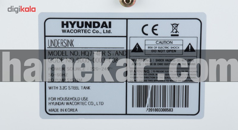 دستگاه تصفیه آب هیوندای کره جنوبی مدل HQ7-4FRS ، توسط فرایند اسمز معکوس (Reverse Osmosis System) ، می تواند هر آبی را به آب تصفیه شده و بهداشتی تبدیل کند.