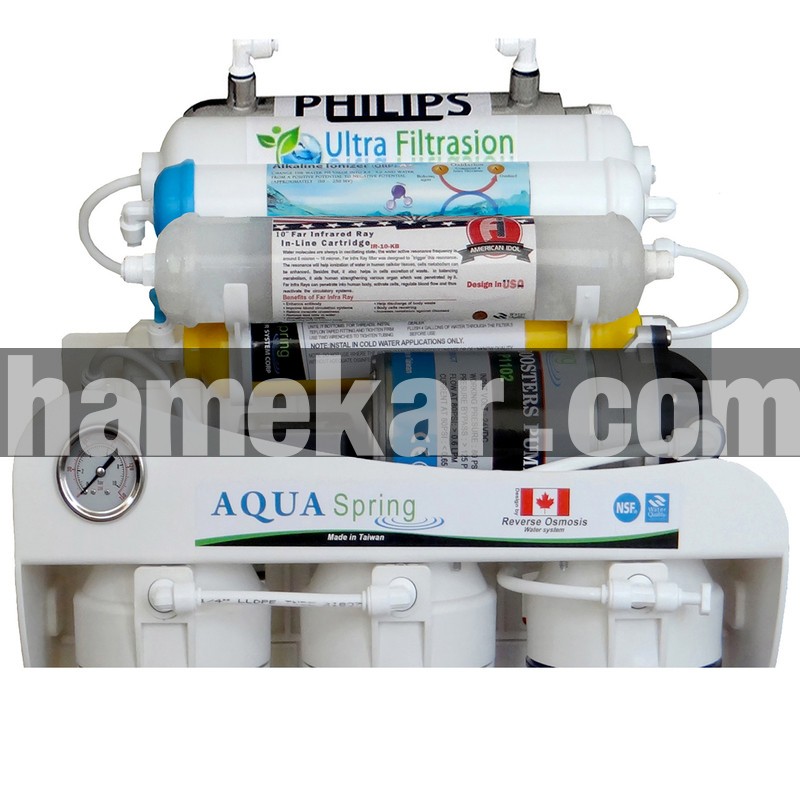 دستگاه تصفیهآب خانگی با برند معتبر اکوآاسپرینگ مجهز به مکانیزم دوگانه مدل UF – SF5000 ده مرحلهای و دارای باکیفیتترین و بروزترین تکنولوژی در فرایند دستگاههای تصفیهآب خانگی است. در این دستگاه از متریال و هوزینگهای فودگرید، فیلترهایی برپایه گیاهی، مخزن آنتیباکتریال 16 لیتری، مگابوستر پمپ قوی بافشار 125 PSI و شیر جداگانه برخوردار است.