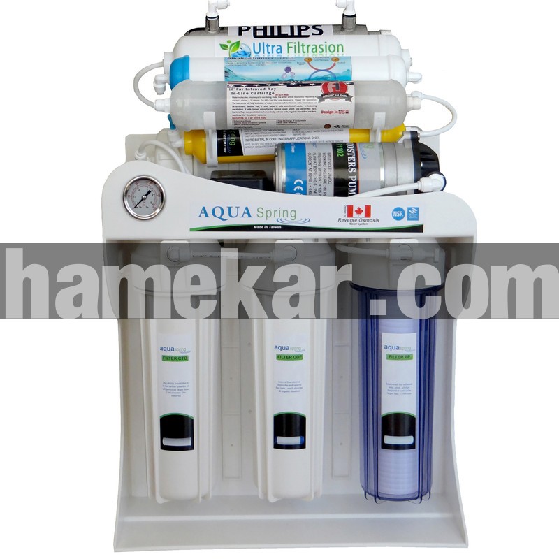 عملکرد فیلترهای این دستگاه در سهمرحله اول بهاینصورت است که کلیه املاح معلق و مضر، کلر، آفتکشها و شوری را از آب گرفته و درمرحله بعد نیترات، نیتریت، جیوه و میکروارگانیسمهای شیمیایی و فلزات سنگین (کلیه املاح سرطان زا) را بهطور کامل از آب میگیرد.