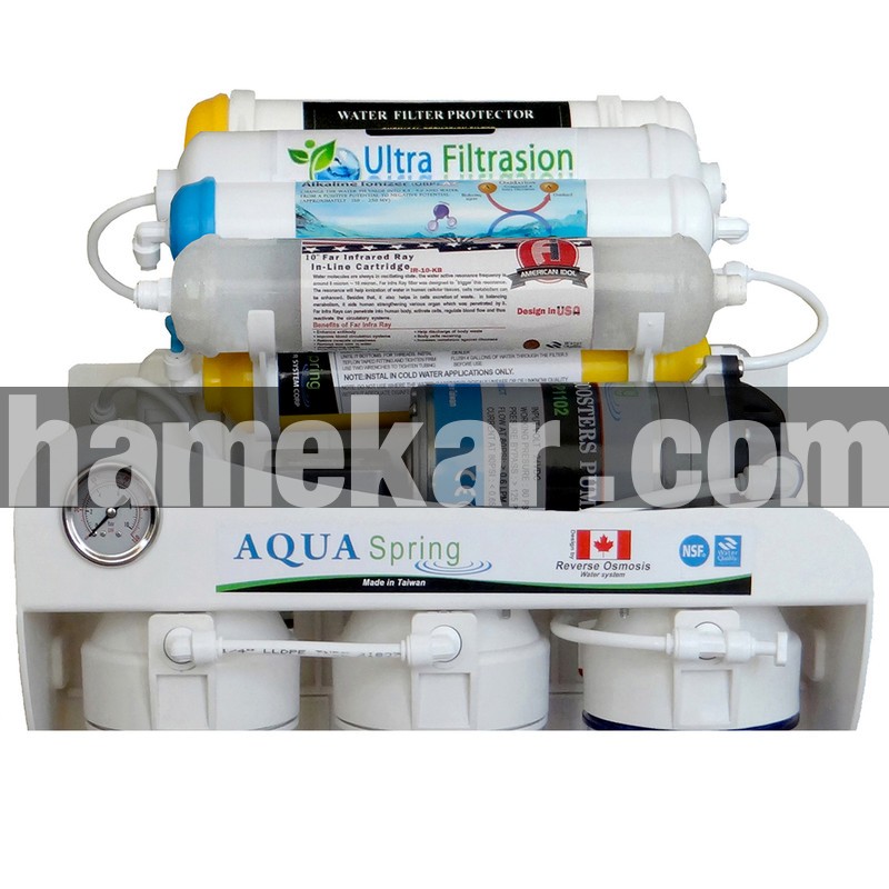 مجهز به کیت نشتی گیر مجهز به اولترافیلتراسیون UF اتوفلش خودکار جهت شستشوی ممبران قابلیت تنظیم میزان تصفیه آب از بین بردن کلیه املاح مضر و میکروارگانیسم ها افزودن املاح مورد نیاز بدن در مرحله نهایی از بین برنده شوری(شیرین کننده آب) دارای مخزن آنتی باکتریال از جنس پلی پروپلین دارای فیلتر اکسیژن ساز دارای فیلتر قلیایی ساز دارای فیلتر محافظ ممبران مونتاژ ایران