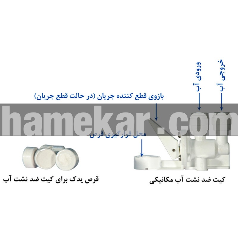 کیت نشتی تصفیه آب ابزاری کوچک و بسیار کاربردی در استفاده از دستگاه های تصفیه آب خانگی میباشد .کیت LEAK DETECTOR ساخت شرکت فلاکستک تایوان و دارای قرص های بسیار حساس نسبت به آب و رطوبت بوده که به محض نشتی دستگاه تصفیه آب جریان ورودی آب را قطع می نماید تا از خسارت و نشت آب جلوگیری کند.در سنسور نشت آب مکانیکی, هر دو بخش به روش مکانیکی عمل میکنند .برای تشخیص نشت آب از یک قرص کوچک استفاده میشود که نسبت به آن حساس است.