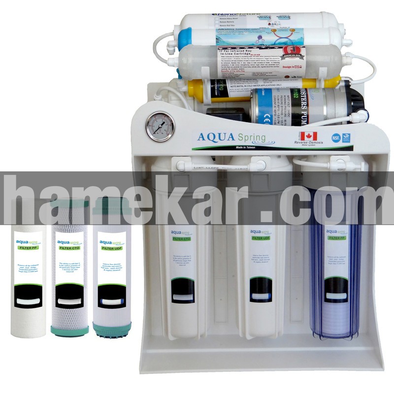 دستگاه تصفیه کننده آب آکوآ اسپرینگ مدل NF – SF4400 به همراه فیلتر تصفیه اب کد 01 مجموعه 3 عددی