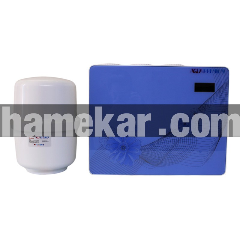 این مدل دستگاه کیسی آکواپرمیوم با رنگ آبی و سیستم اسمز معکوس RO در 7 مرحله توسط 7 فیلتر مجزا آب را تصفیه میکند