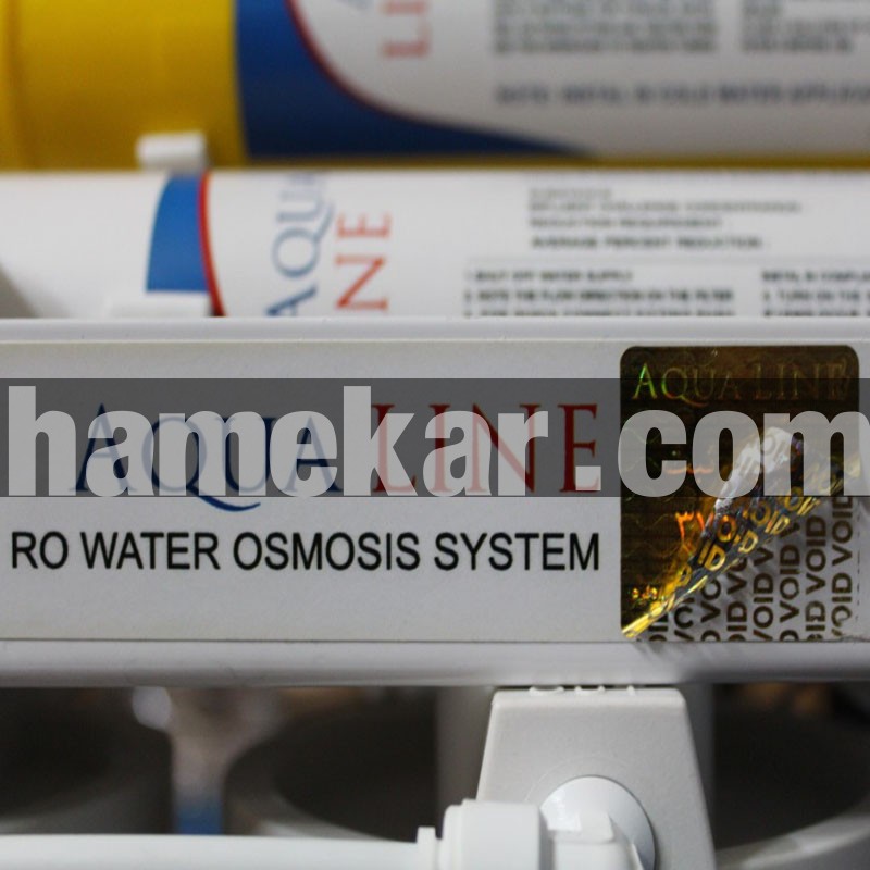 دستگاه تصفیه آب خانگی آکوا لاین 9 مرحله به همراه پک فیلتر 3 عددی مونتاژ شده با قطعات با کیفیت تایوانی میباشد فیلترهای این محصول قابلیت حذف ذرات معلق در آب ،کلر،املاح مایع،رنگ های صنعتی ،مواد شیمیای،نیترات، نیتریت ،جیوه وحذف طعم و بوی نامطبوع آب را دارد.مخزن استفاده شده در این دستگاه از جنس FOOD GRADE قابل استفاده خوراکی میباشد.فیلترهای این مجموعه عبارتند از فیلتر پلی پروپیلن جهت حذف ذرات معلق آب، فیلتر کربن بلاک جهت حذف طعم و بوی نامطبوع آب، فیلتر کربن اکتیو جهت حذف آلاینده های شیمایی، فیلتر محافظ ممبران جهت جلوگیری از ورود ذرات معلق به ممبران، ممبران جهت تصفیه کامل آب و حذف کلیه املاح جامد و مایع مثل نیترات و جیوه 6-فیلتر پست کربن جهت حذف بوی نامبوع آب ذخیره شده مخزن، فیلتر مینرال جهت افزودن املاح معدنی مورد نیاز بدن، فیلتر قلیایی جهت تنظیم PH آب، فیلتر 4کاره آب شیرین کن است.