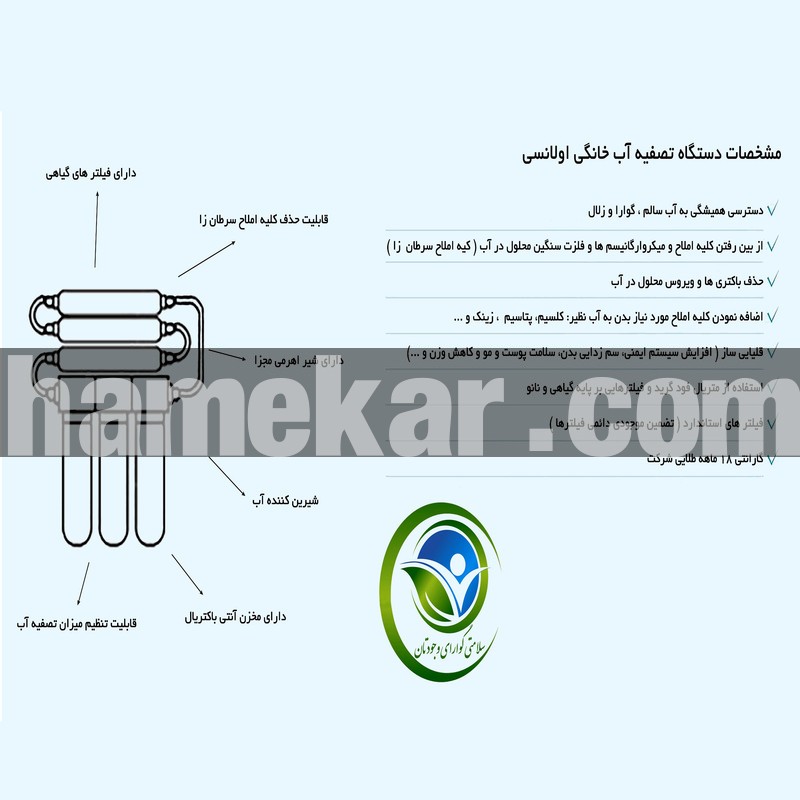 دستگاه تصفیه آب خانگی اولانسی مدل GT-9600 هشت مرحله ای، متریال و کلیه قطعات ساخت کشور تایوان و از بهترین و با کیفیت ترین محصول خود رونمایی کرده است