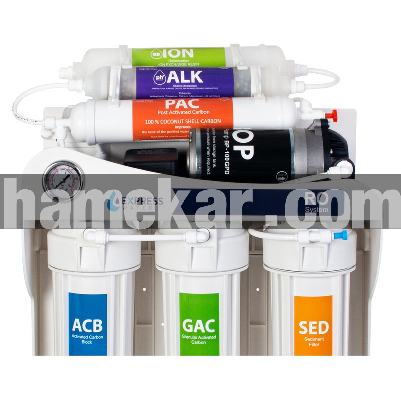 دستگاه تصفیه آب خانگی 7 مرحله ای با برند معتبر اکسپرس واتر به روش اسمز معکوس (RO) عمل کرده و جدیدترین و به روزترین تکنولوژی در فرآیند دستگاههای تصفیه آب خانگی می باشد.