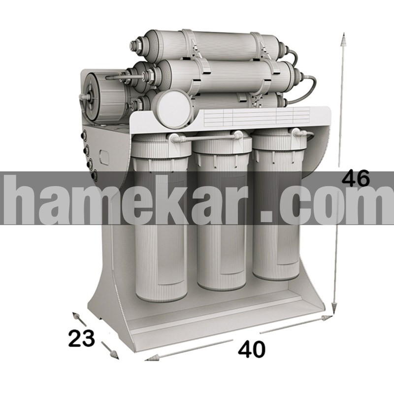مونتاژ ایران -دارای مخزن ذخیره آب با ظرفیت 3.2 گالونی -دارای شیر استیل اهرمی مرغوب -آنتی باکتریال -ذخیره آب تصفیه شده در زمان قطع جریان برق حذف ذرات معلق در آب تا0.0001 میکرون حذف کلر و کدورت آب حذف کلیه رسوبات، شن و ماسه حذف کلیه املاح مضر از جمله : نیترات،نیتریت و جیوه حذف آلودگی های میکروبی حذف شوری آب(آب شیرین کن) حذف طعم و بوی نامطبوع آب افزودن املاح مفید نظیر سدیم،پتاسیم و منیزیم و کلسیم به آب توسط فیلتر املاح معدنی مجهز به فیلتر یو وی ، فرا بنفش