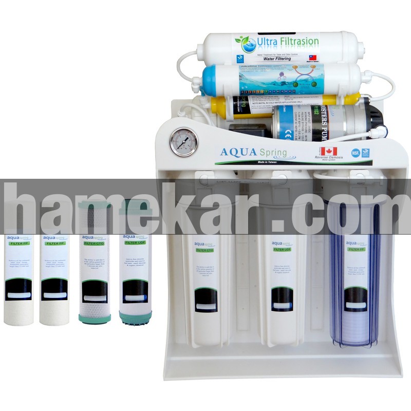 دستگاه دو گانه تصفیه کننده آب آکوآ اسپرینگ مدل UF-SF3800 به همراه فیلتر دستگاه تصفیه آب کد 01 بسته 4 عددی