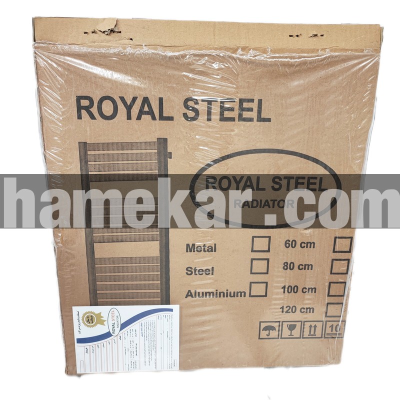 حوله خشک کن های استیل ، برای نصب در حمام و دستشویی و برای گرم کردن فضای حمام و خشک کردن حوله ها مورد استفاده قرار می گیرد. جنس رادیاتور حوله خشک مدل رویال استیل کد فلت 002 از ورق استیل 304 می باشد که کاملا ضد آب و ضد زنگ است.نوع پوشش حوله خشک کن طلایی آبکاری پی وی دی میباشد و نوع پوشش حوله خشک کن سفید و مشکی رنگ پودری استاتیک میباشد.نوع پوشش حوله خشک کن کروم و کروم مات نیز آبکاری نیکل کروم می باشد. رادیاتورهای حوله خشک کن، نوعی مبدل حرارتی جهت انتقال گرمایش و خشک کردن پوشش هایی مانند حوله و لباس های کوچک به کار رفته و در فضاهایی مانند حمام، حمام شیشه ای یا فضای پیشخوان سونا خشک و سونا بخار مورد استفاده قرار می گیرد. از رادیاتورهای حوله خشک کن می توان به عنوان یکی از پرمصرف ترین سیستم های گرمایشی داخل حمام نام برد