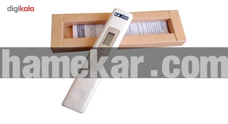 این دستگاه (سختی سنج) با برند معتبر و اورجینال KO JINE جهت اندازه گیری میزان سختی و املاح موجود در آب مورد استفاده قرار می گیرد.TDS Meter   مخفف کلمه Total Dissolved solids  می باشد.تی دی اس با توجه به میزان مواد جامد محلول در آب و نوع آن (آلی یا غیر آلی) تعیین می شود.مواد معدنی موجود در آب عبارتند از نیترات،نیتریت،آرسنیک،جیوه،سرب،منگنز،روی ،مواد آلی و مواد شیمیایی می باشدکه عنصر کربن در آن وجود داشته باشد.میزان تی دی اس (TDS) آب با کیفیت آب رابطه معکوس دارد.