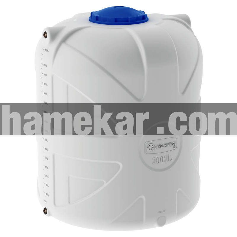 مخزن پلی اتیلن 2000 لیتری عمودی بارز قطران سه لایه و ضد جلبک می باشد. این مخزن مناسب برای نگهداری آب، مواد خوراکی،سوخت و مایعات شیمیایی می باشد. این مخزن از مواد اولیه درجه یک ساخته شده است،مقاومت مکانیکی بالایی دارد و امکان بهره برداری در دمای -30 تا +60 درجه سانتیگراد را دارد. قطر مخزن 135 و ارتفاع آن 165سانتیمتر می باشد. برای این مدل فیتینگ ورودی و خروجی 3/4*1 اینچ تعبیه شده است.