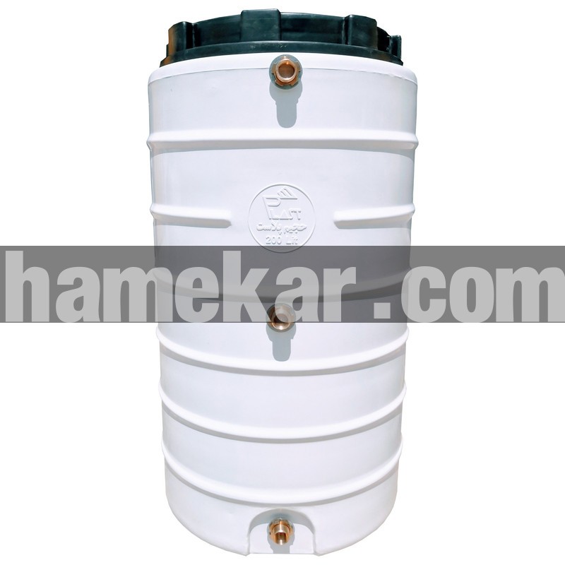مخزن انبشاط پلی اتیلن 200 لیتری حجیم پلاست سری A دارای اتصال برنجی ورودی و خروجی میباشد که از مواد درجه یک و از به روز ترین طرح قالب در تولید این محصول استفاده شده است. این محصول سه لایه ضخامت بالا و ضد جلبک و ضد باکتری میباشد که از بو و مزه دادن آب در آن جلوگیری میشود.