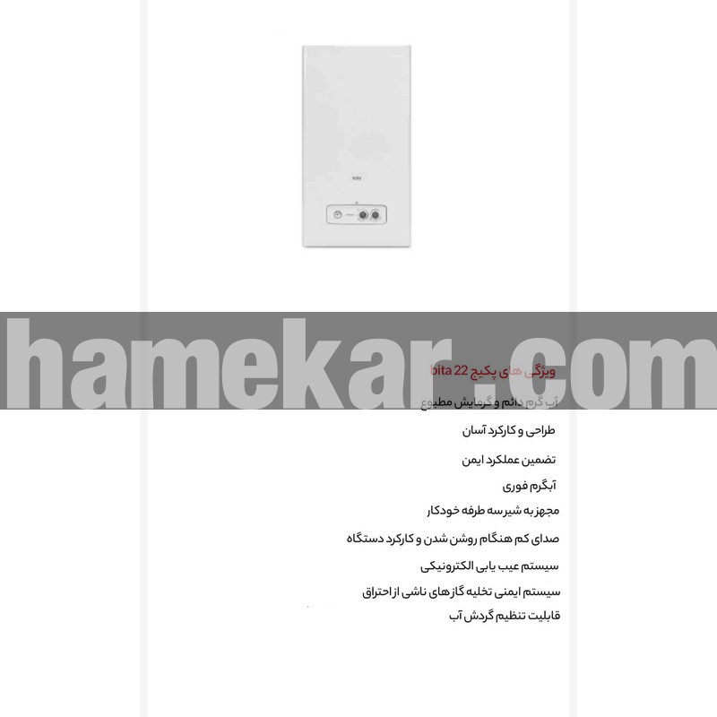 پکیج شوفاژ دیواری بوتان مدل Bita 22 Sealed یکی از محصولات برتر برند بوتان است که با تکنولوژی بالا و کیفیت عالی خود می‌تواند نیازهای گرمایشی خانه شما را برآورده کند. این محصول با استفاده از تکنولوژی روز دنیا طراحی‌شده‌است و از ویژگی‌های منحصر به فردی برخوردار است که در ادامه به توضیح آن‌ها خواهیم پرداخت. ویژگی‌های کلیدی این محصول عبارتند از: