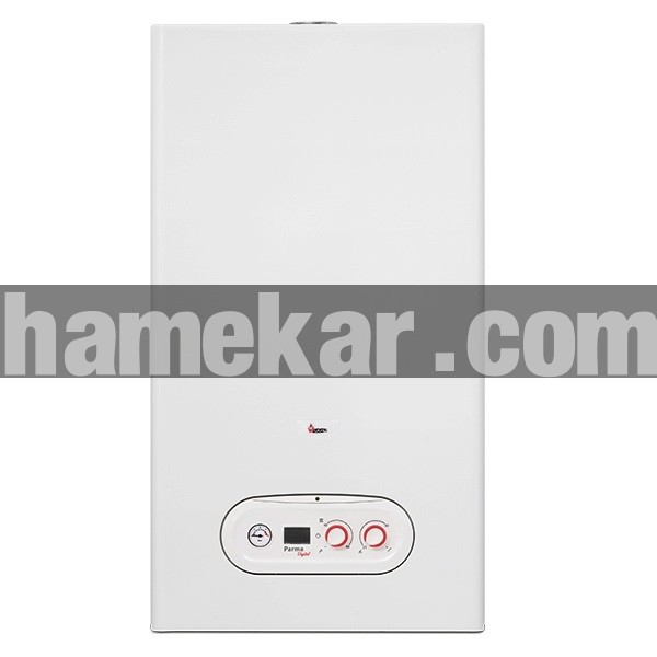 پکیج پارما 24RSi دیجیتال، قابلیت پوشش دهی تا 210 مترمربع (با توجه به شرایط آب و هوایی، موقعیت ساختمان و مصالح مصرفی) را دارا می باشد. این مدل مجهز به نمایشگر دیجیتال جهت نمایش: 1- وضعیتهای کاری مختلف دستگاه 2- دمای آب مدار گرمایش حین عملکرد عادی 3- دمای آب گرم مصرفی هنگام استفاده از آب گرم مصرفی 4- کدهای عیبیابی در صورت بروز اشکال در سیستم می باشد. این محصول با راندمان 92/8 درصد و مجهز به معتبرترین قطعات استاندارد اروپایی و بوتانی، آب گرم فوری و دائم را برای شما به فراهم می نماید. مدل Parma RSi محفظه احتراق بسته است و عمل تخلیه دود و مکش هوا از طریق یک دودکش دوجداره مخصوص صورت می پذیرد. این شوفاژ به یک فن نیز مجهز می باشد تا به کمک دودکش دوجداره ، هوا لازم برای احتراق را از فضای آزاد به دستگاه برساند و گازهای ناشی از احتراق را به فضای آزاد هدایت نماید. به این ترتیب کیفیت هوای محل نصب نیز حفظ می گردد.